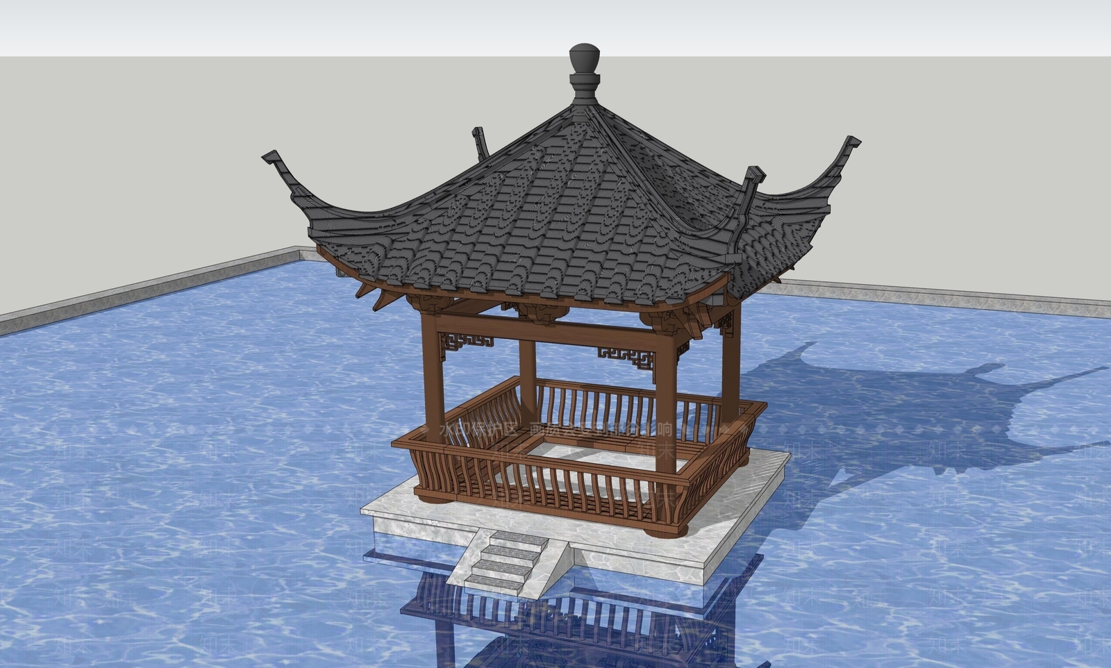 - 新中式亭子 四角亭 凉亭 水榭 苏式建筑 古建