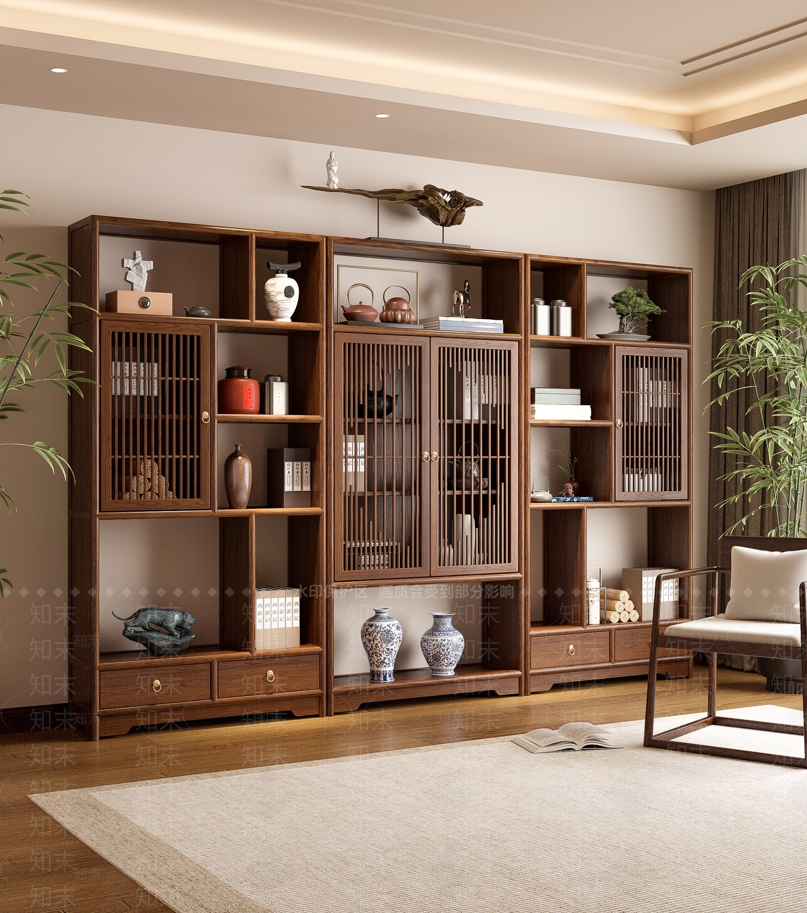 - 新中式博古架 储物柜 博古架 书柜 置物架
