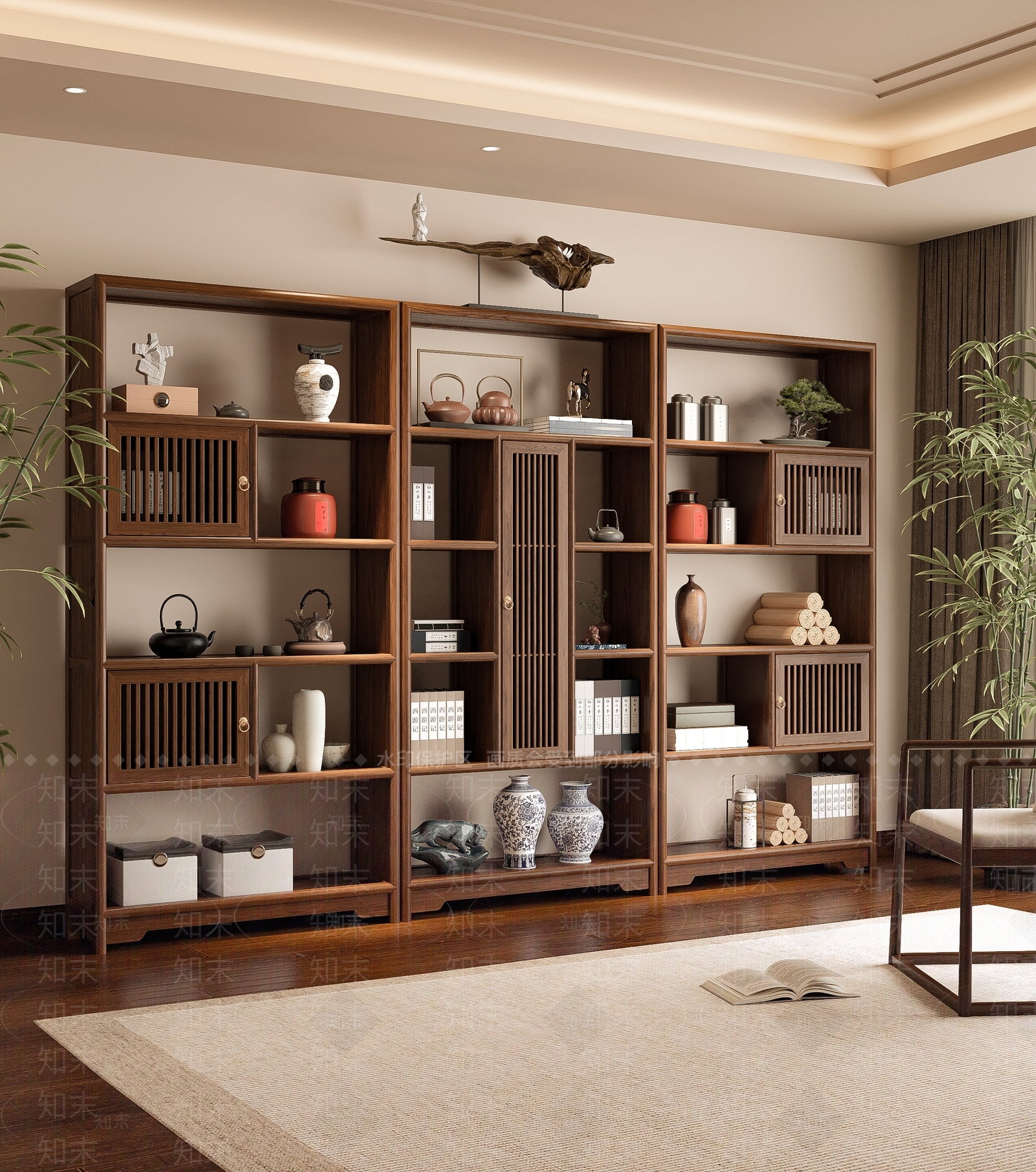 - 新中式博古架 储物柜 博古架 书柜 置物架