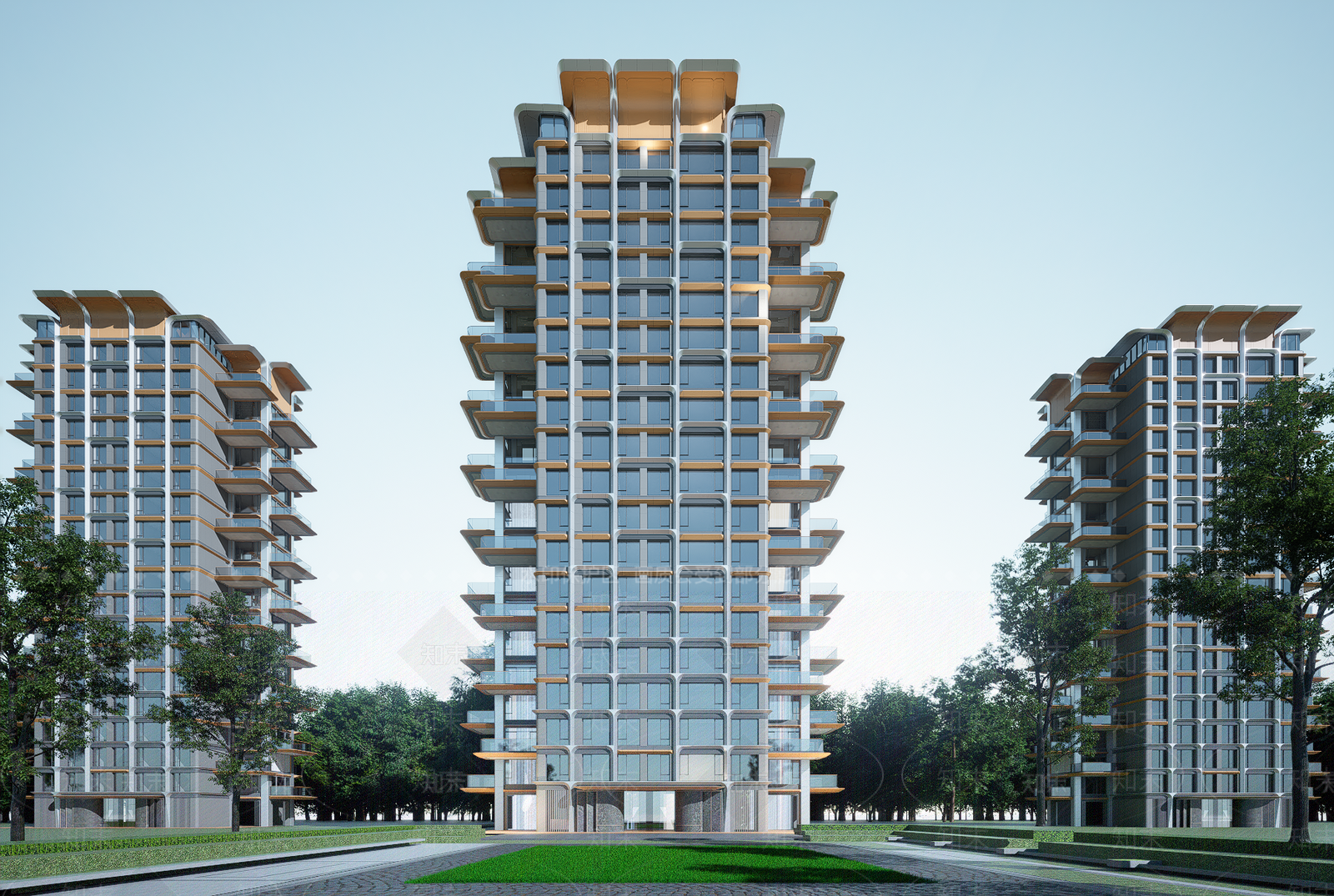 - 现代简约高层住宅 现代高档住宅楼 高层住宅 高品质住宅 轻奢金属感住宅 流线曲面