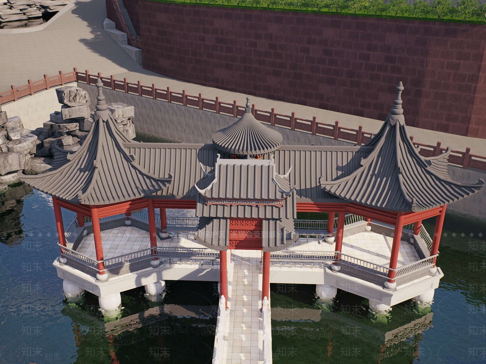 - 新中式古建筑 园林水榭 古典凉亭 休憩亭 景观园林亭子 景亭