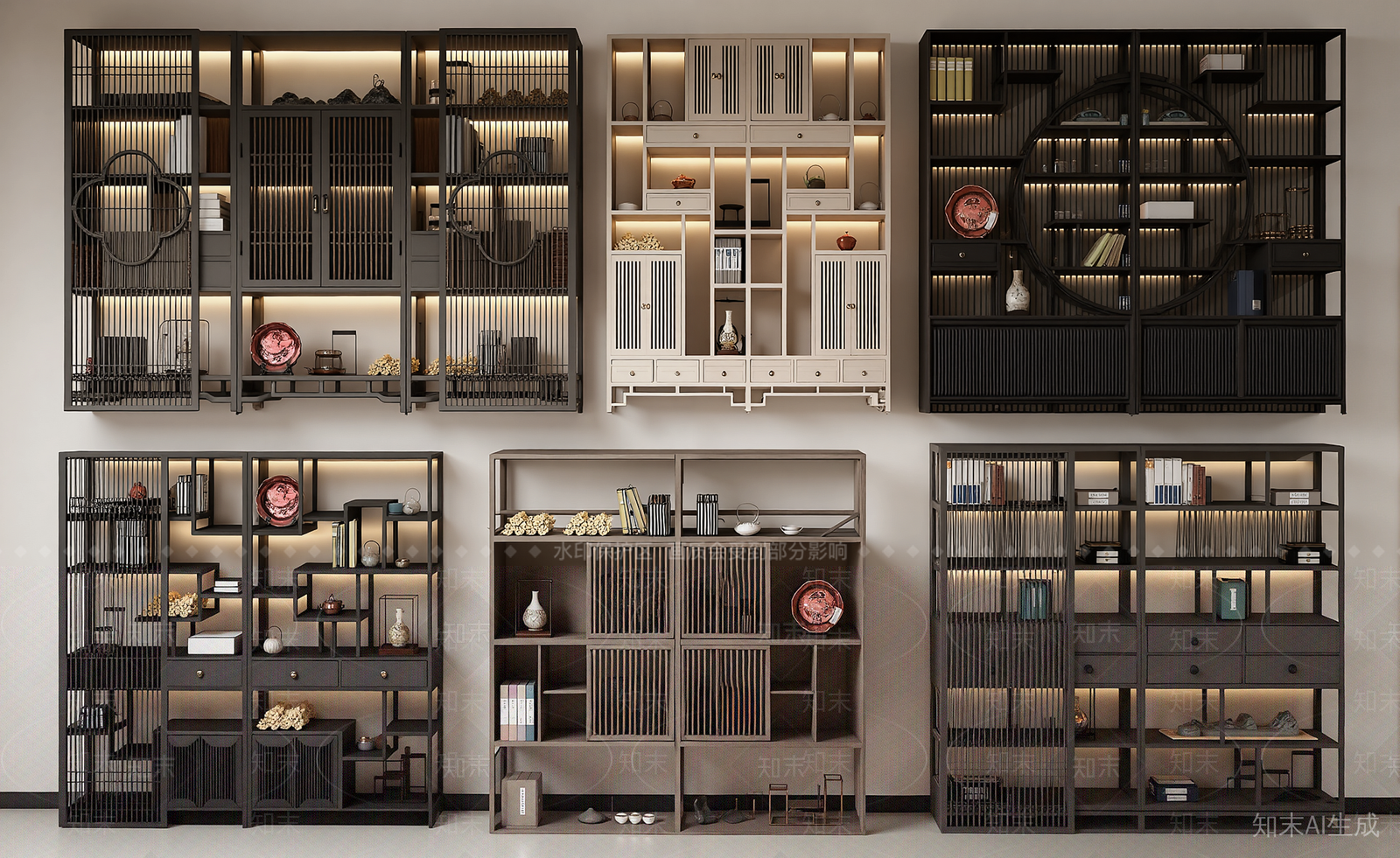 - 新中式博古架 储物柜 博古架 书柜 置物架