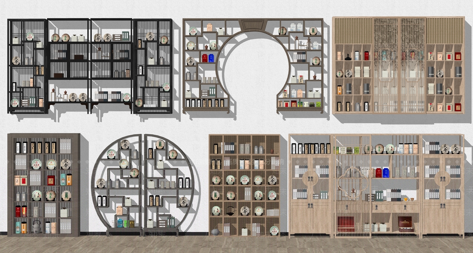 - 新中式中式博古架 博古架组合 茶叶架展柜展架