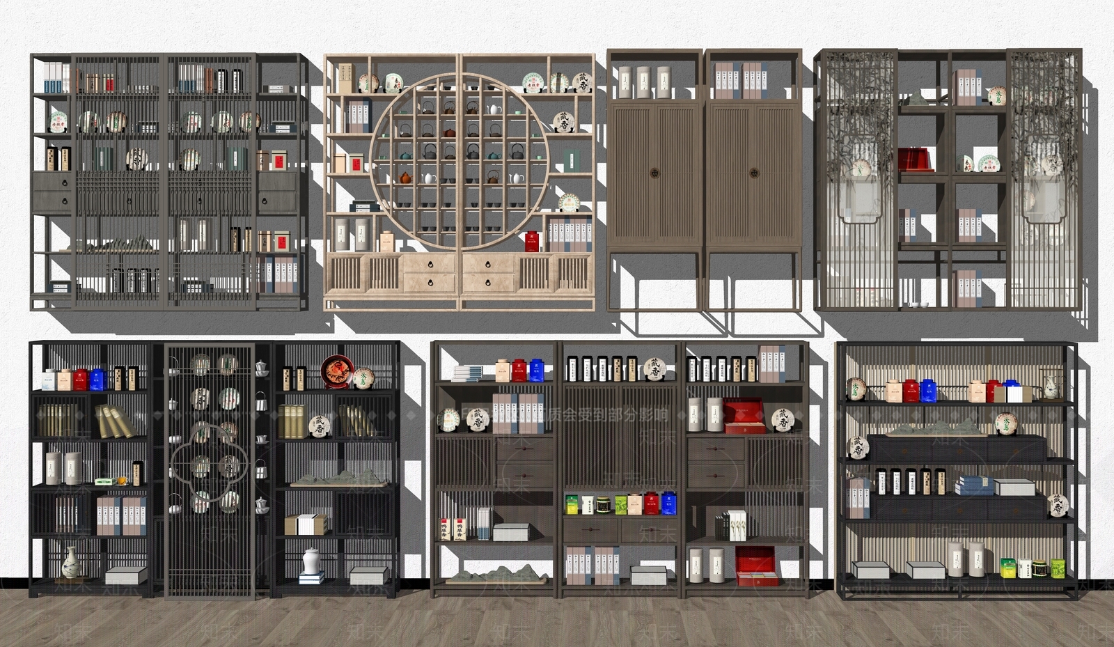 - 新中式博古架 储物柜 博古架 书柜 置物架