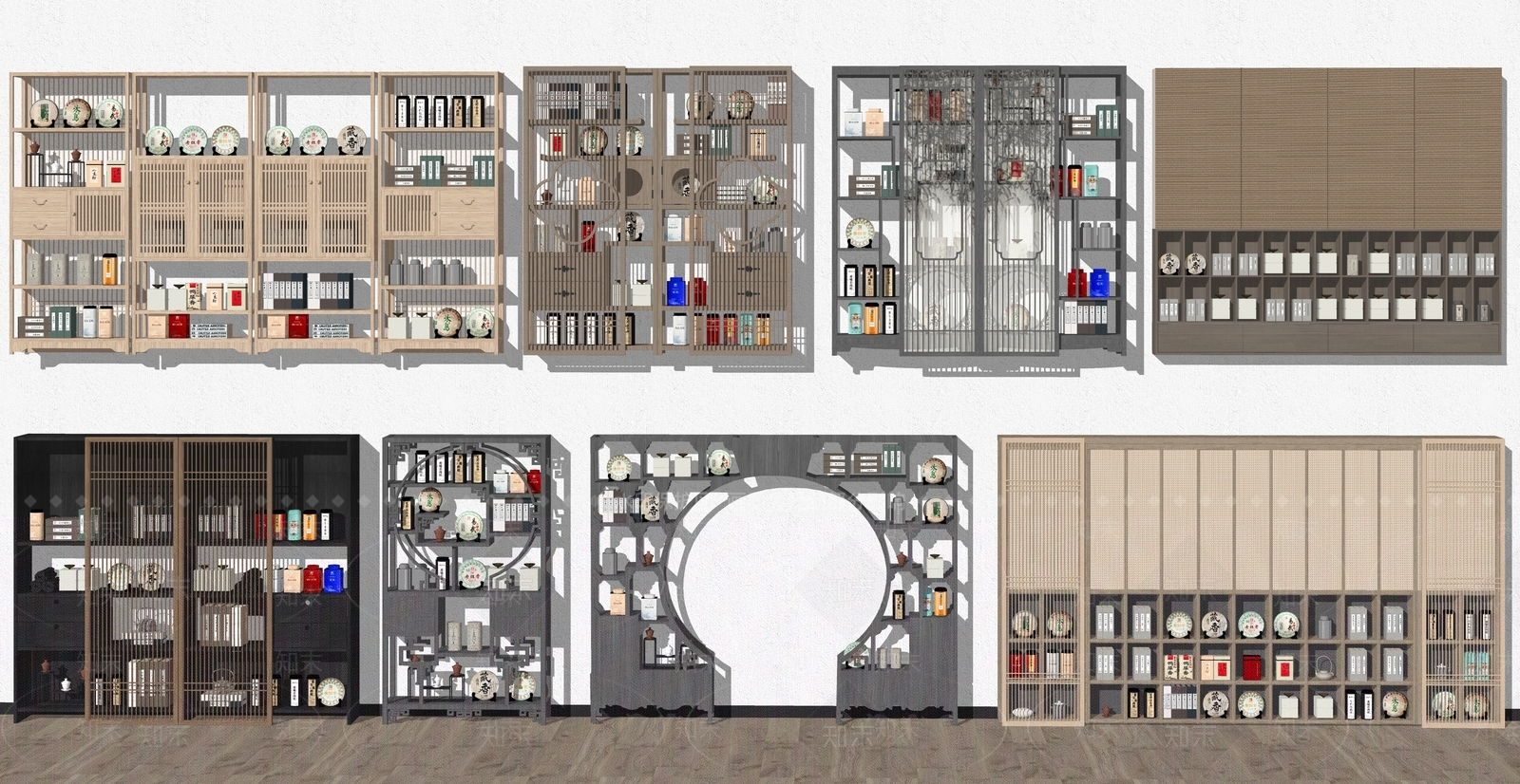 - 新中式中式博古架 博古架柜组合 茶柜展架展柜