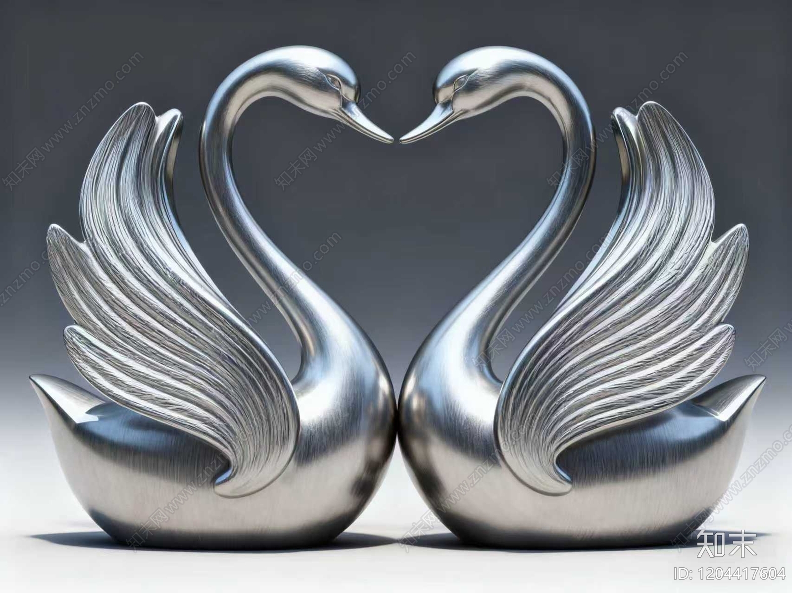 现代雕塑 天鹅雕塑 天鹅美陈 动物美陈 金属雕塑 AI渲染