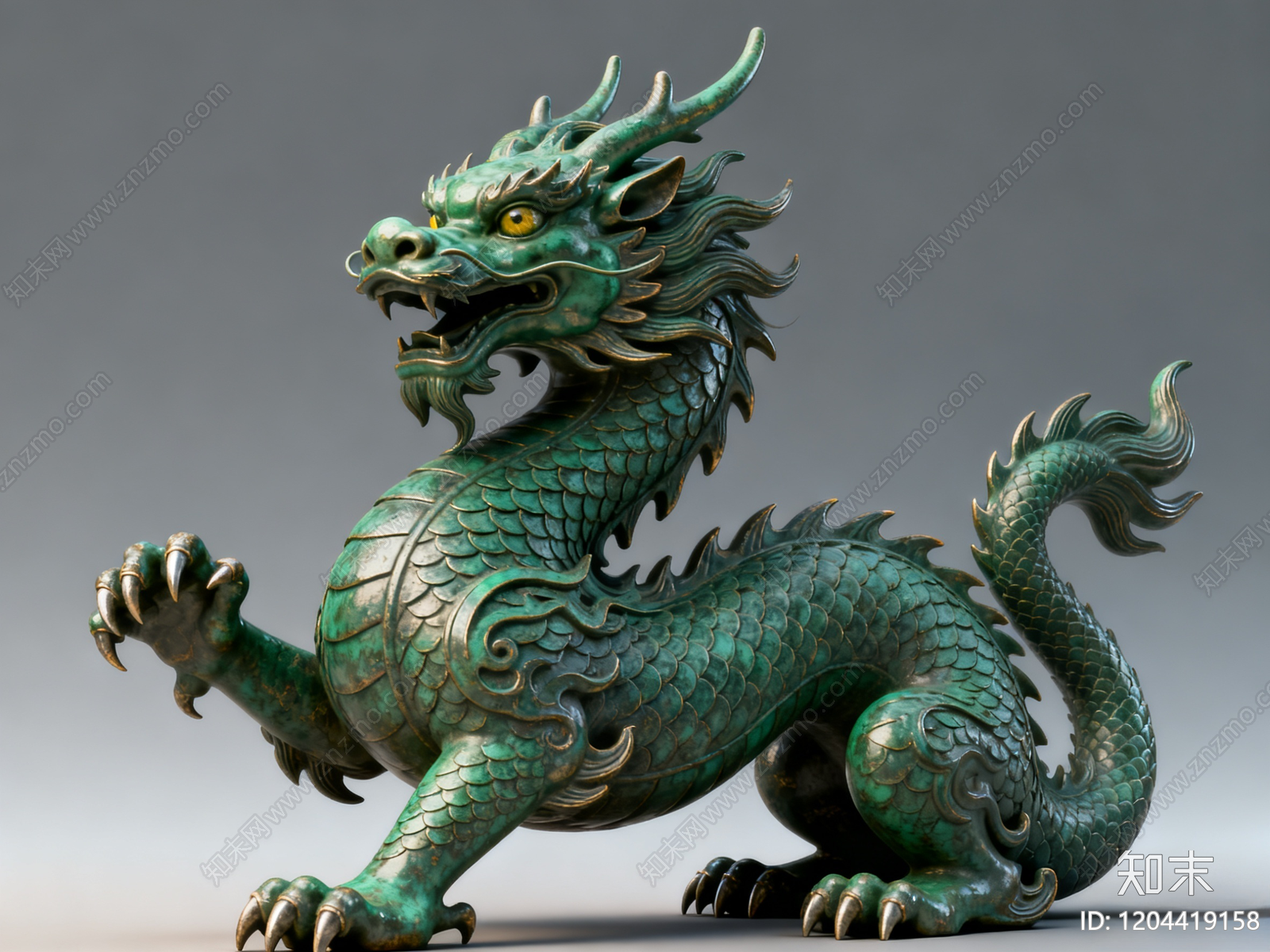 - 现代新中式雕塑 青龙 四灵兽 龙雕塑 铜雕 AI渲染