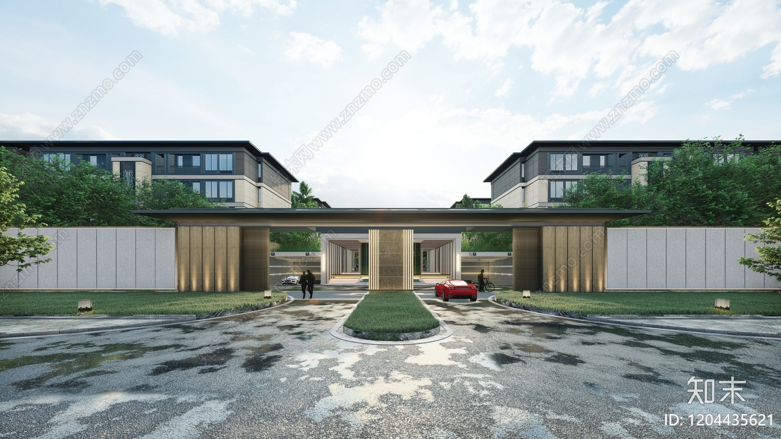 新中式中式小区建筑 小区入口 人车分流 小区大门 地库 停车场入口