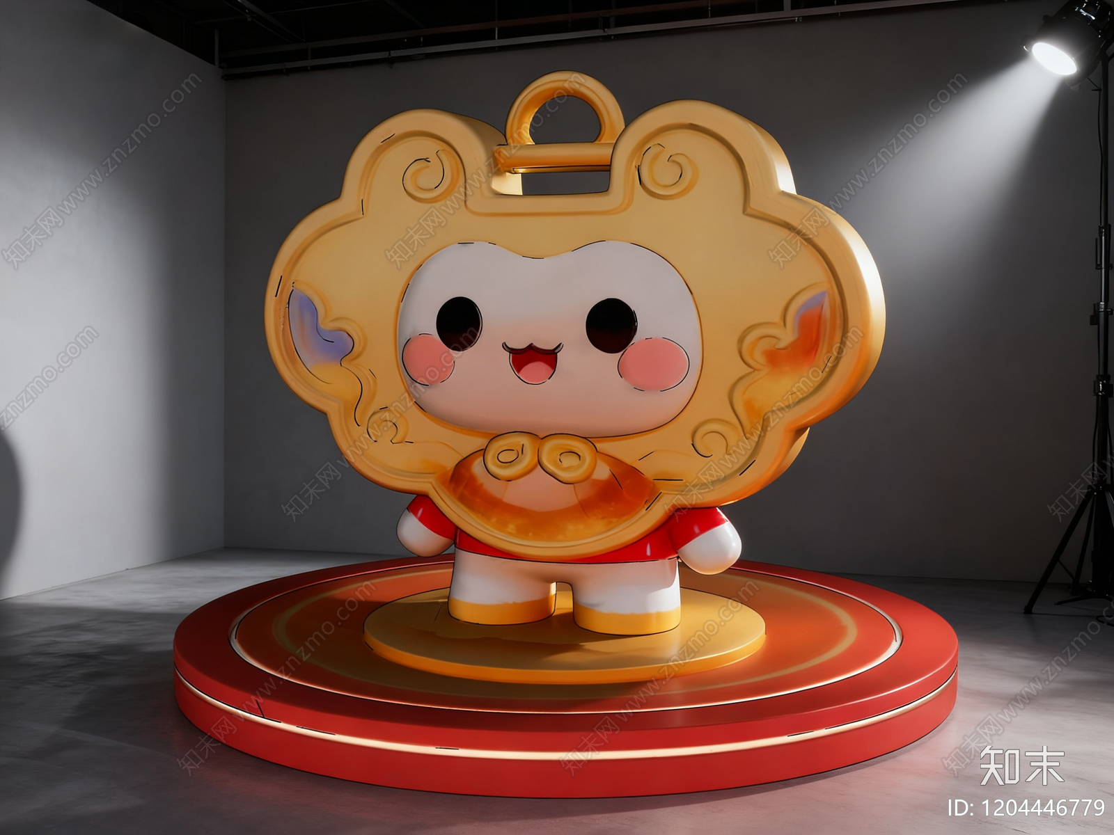 - 现代雕塑 金锁 长命锁 娃娃 雕塑 AI渲染