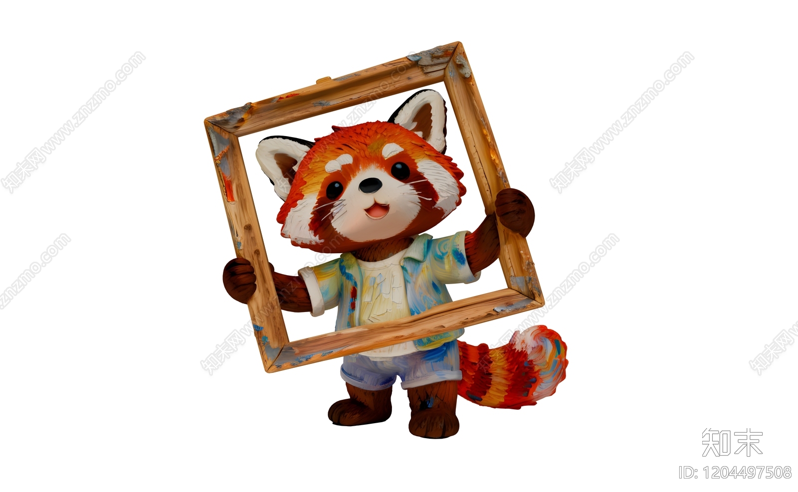 - 现代雕塑 小熊猫艺术画框 笔触质感艺术装置 名画艺术商业美陈 网红互动打卡装置 动物雕塑互动小品