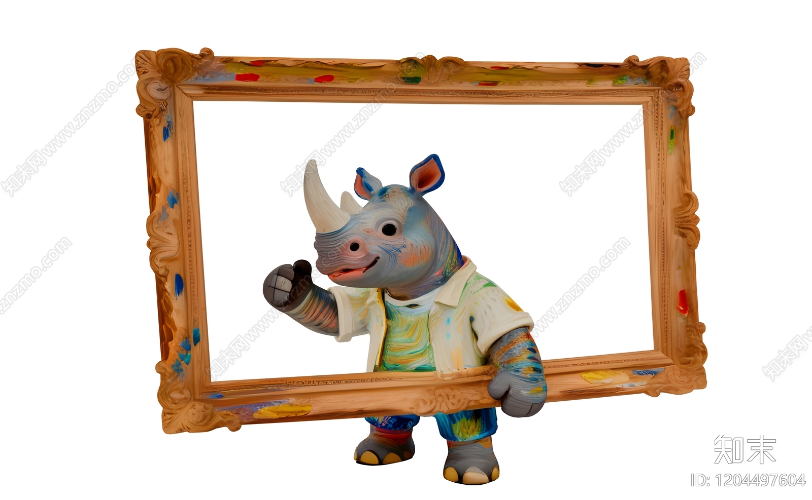 - 现代雕塑 犀牛艺术画框装置 笔触质感艺术装置 名画艺术商业美陈 网红互动打卡装置 动物雕塑互动小品