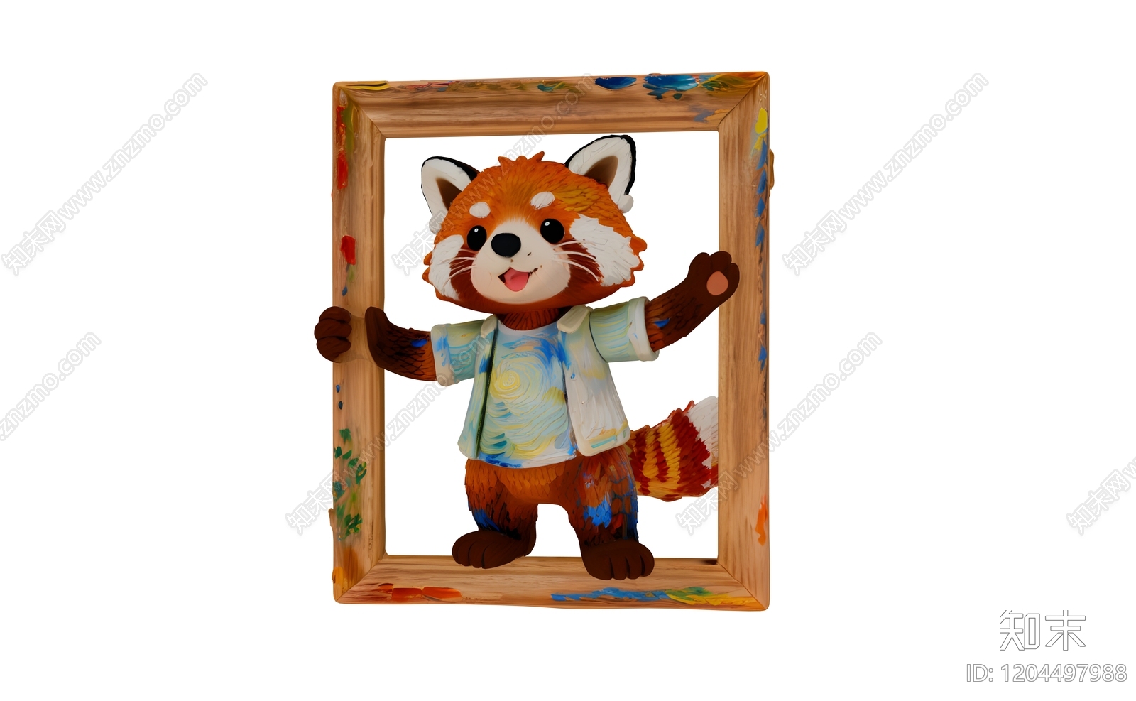 - 现代雕塑 小熊猫艺术画框 动物雕塑互动小品 网红互动打卡装置 笔触质感艺术装置 名画艺术商业美陈