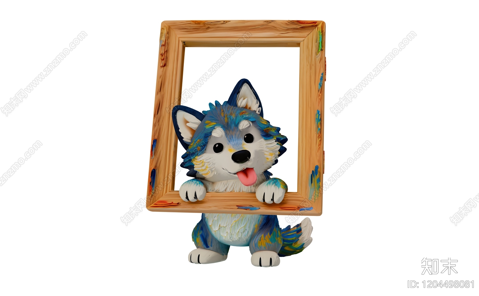 - 现代雕塑 狼艺术画框装置 动物雕塑互动小品 网红互动打卡装置 笔触质感艺术装置 名画艺术商业美陈
