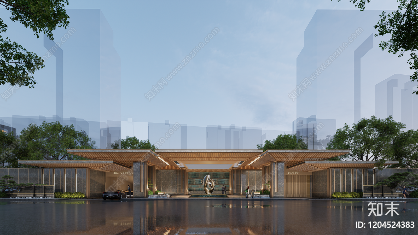 - 现代新中式小区建筑 现代小区大门 豪宅入口大门 现代中式大门