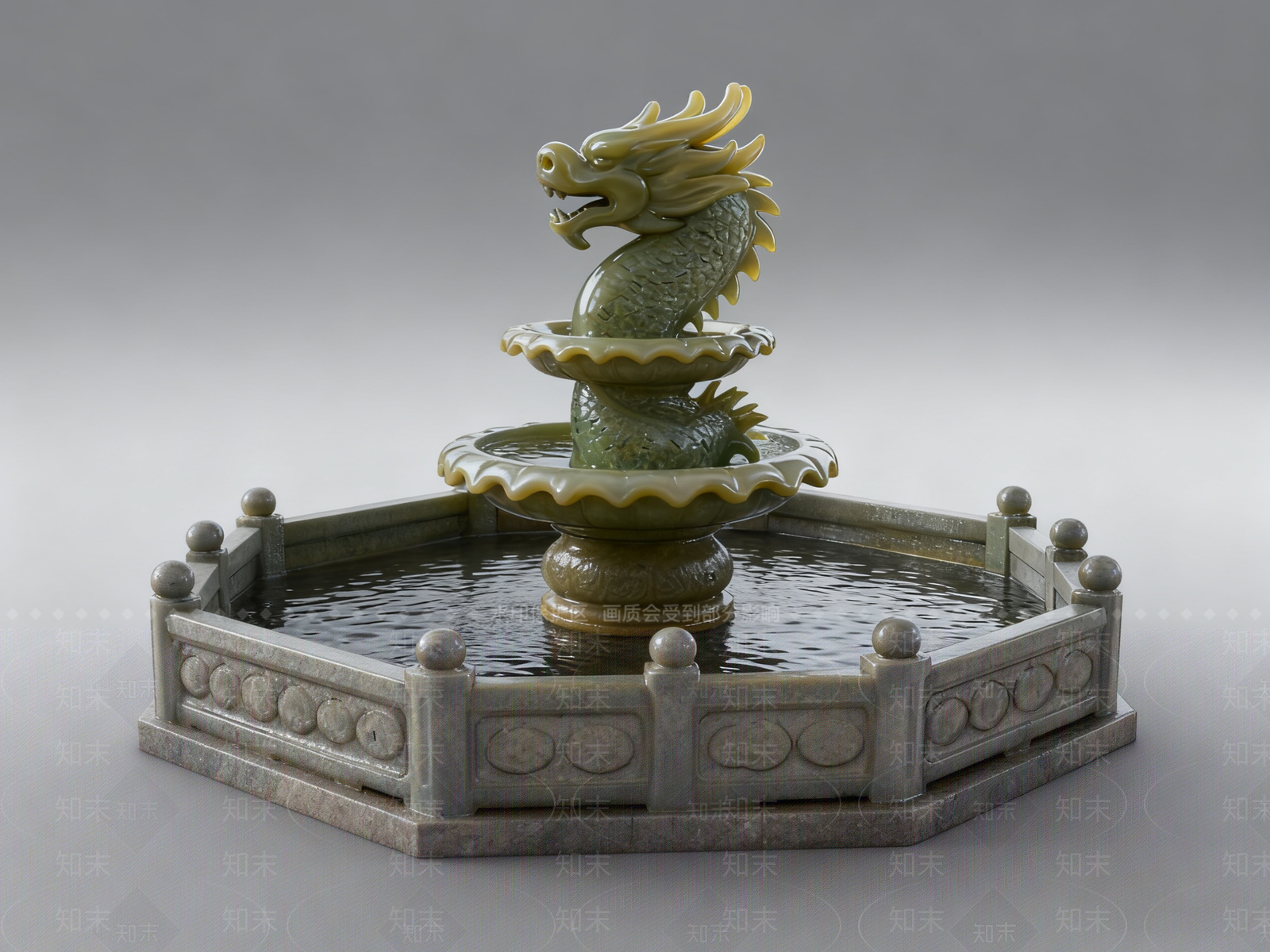 - 现代新中式其他水景设施 龙喷泉 水景 AI渲染 青石雕塑 石雕