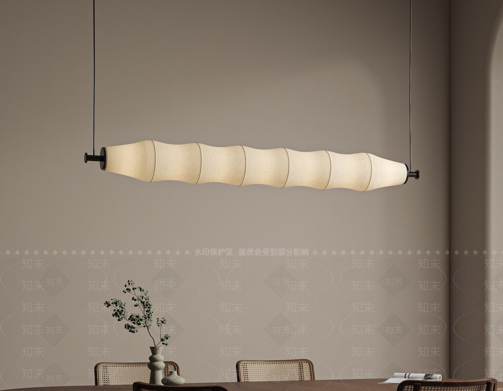 - 新中式禅意餐厅吊灯 餐厅吊灯 长条吊灯 艺术吊灯 布幔吊灯 吧台吊灯