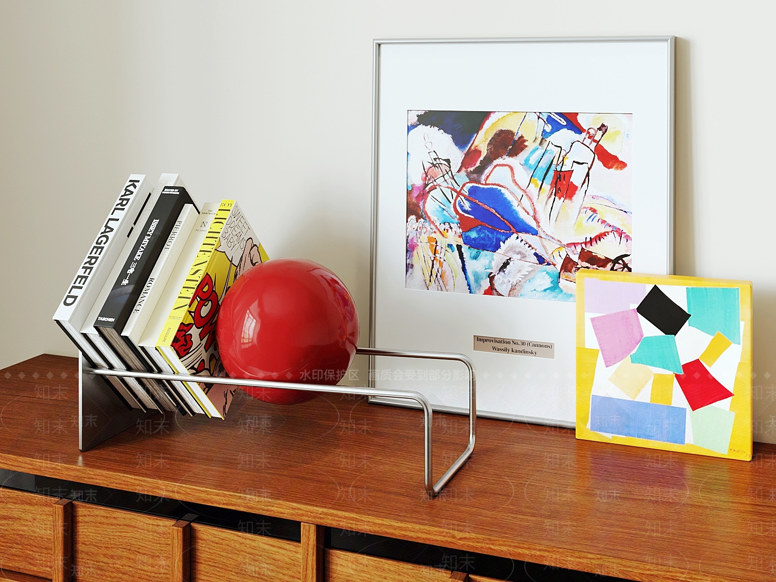 现代中古摆件组合 包豪斯奶油侘寂 法式简约意式极简 重力圆球桌面书架 金属杂志架 装饰画组合