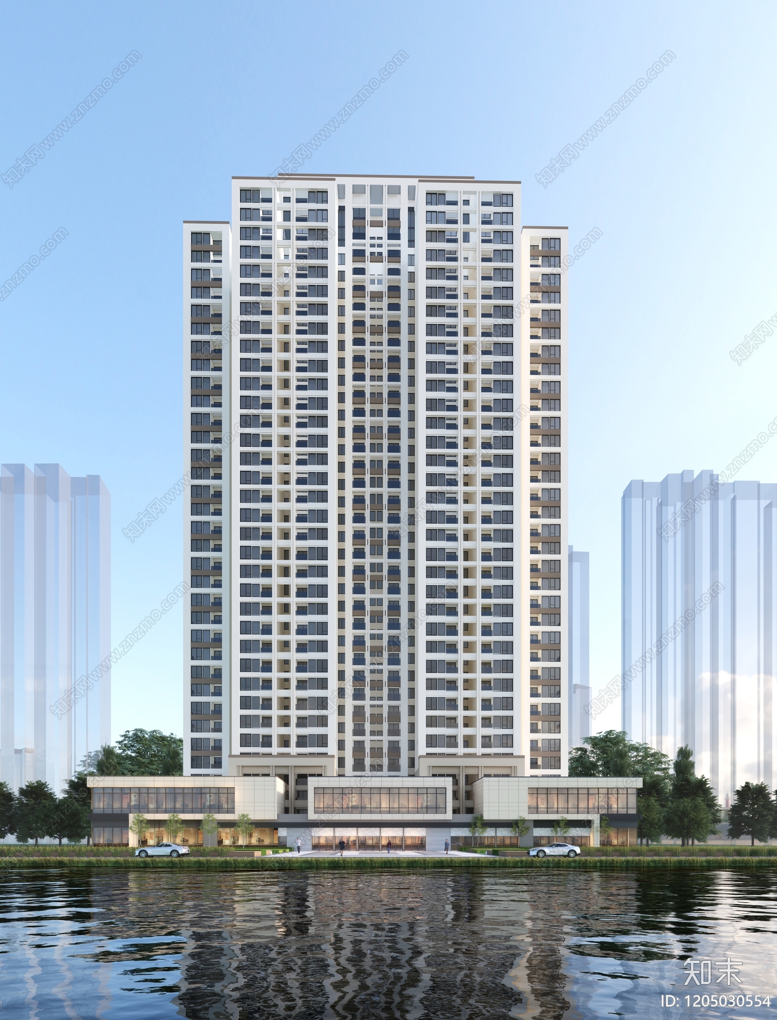 - 现代轻奢高层住宅 现代高层 新古典高层 新亚洲风格高层 高层透视 高层渲染场景