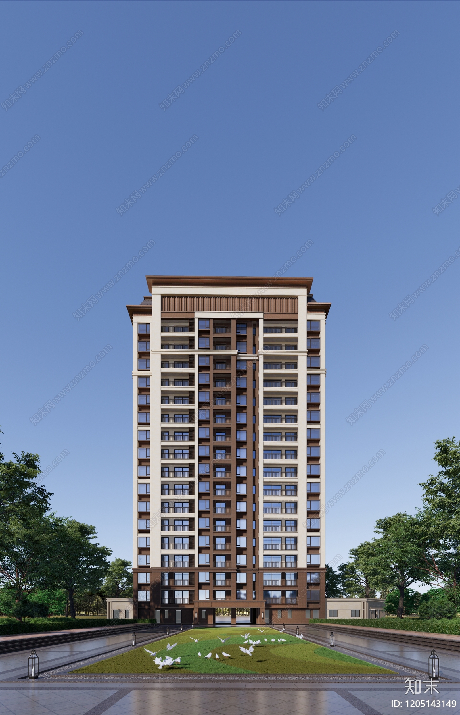 - 现代轻奢高层住宅 现代高层 新古典高层 新亚洲风格高层 高层透视 高层渲染场景