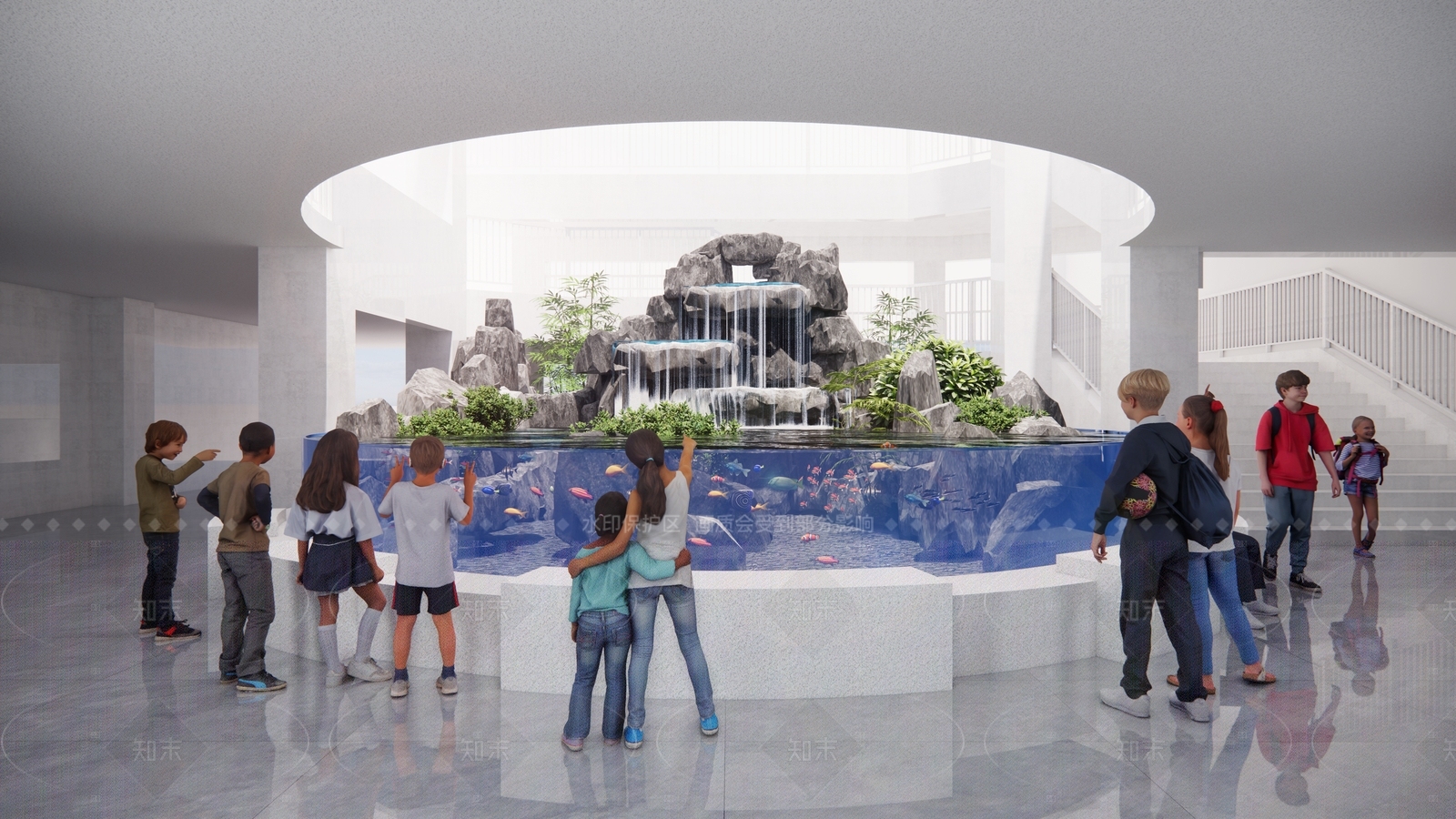 现代中式其他水景设施 中式水池造景 千层石假山造景 校园空间改造 小型水族馆