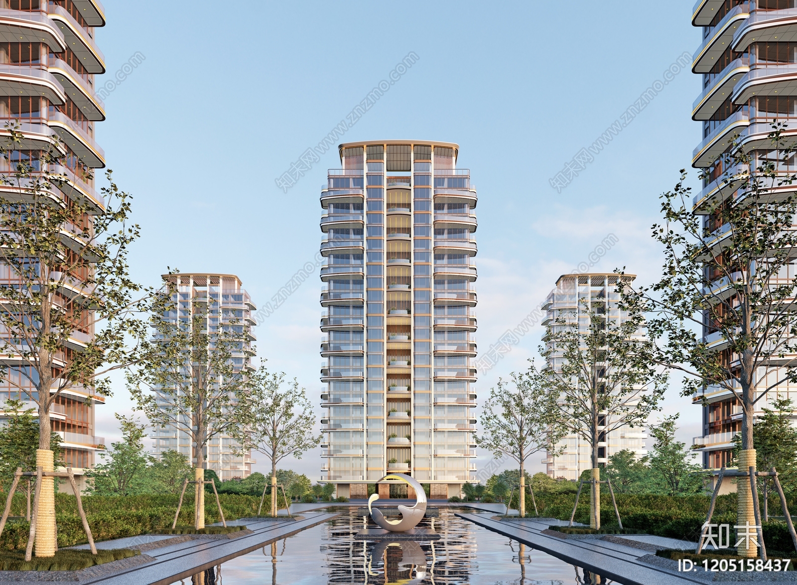 - 现代轻奢高层住宅 现代高层 新古典高层 新亚洲风格高层 高层透视 高层渲染场景