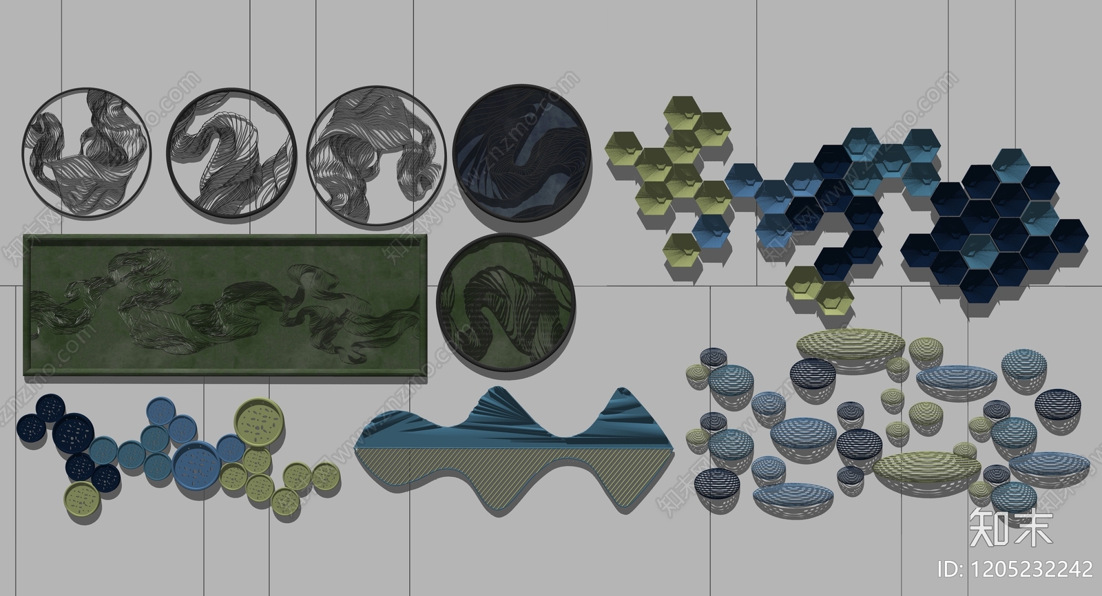 - 现代轻奢艺术装置 室内艺术装置 墙面雕塑 艺术墙饰挂件组合 凹凸墙饰组合 立体墙画