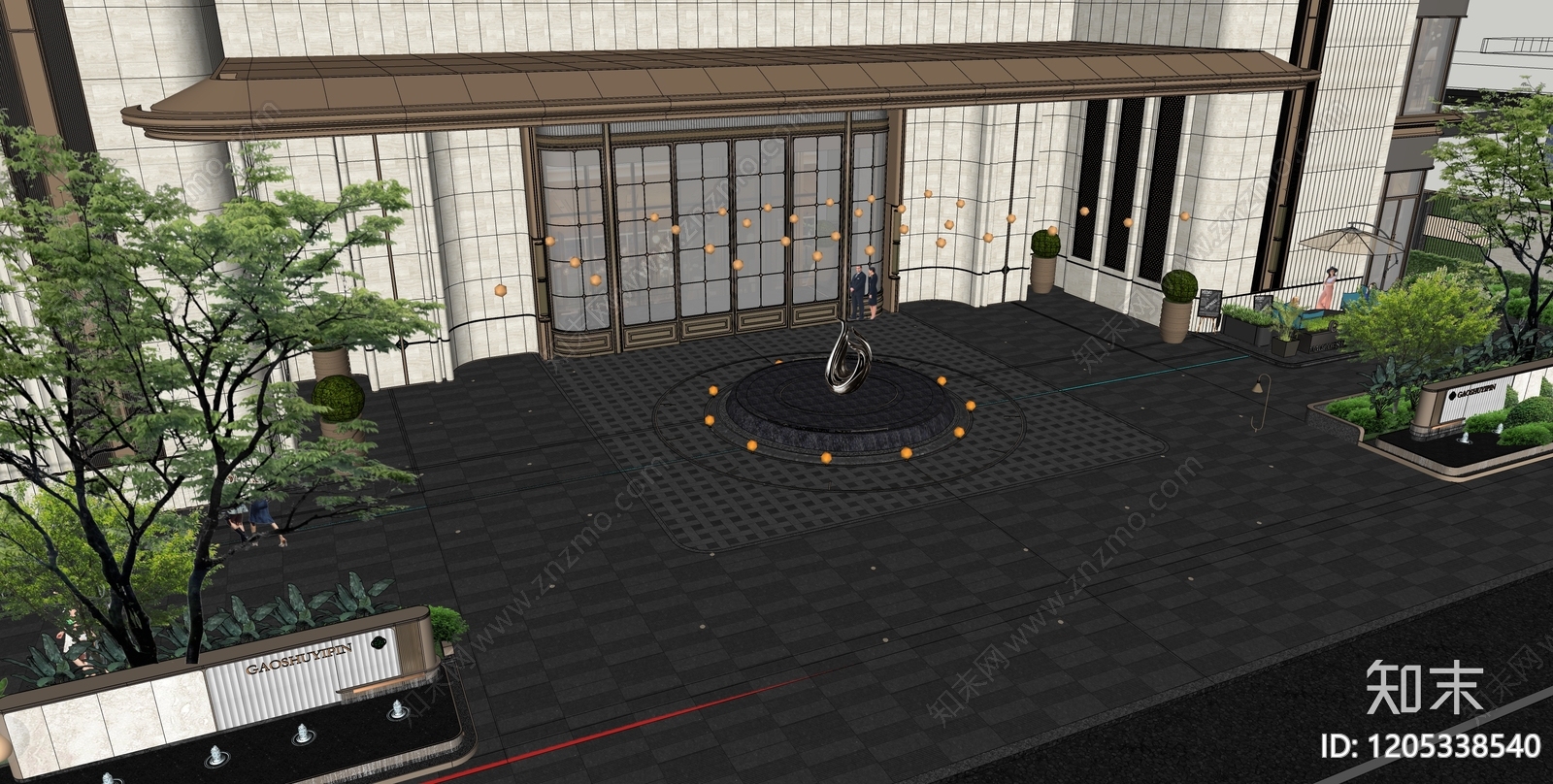 现代轻奢入口大门 轻奢住宅入口门楼 海派 示范区门头 前场 水景雕塑