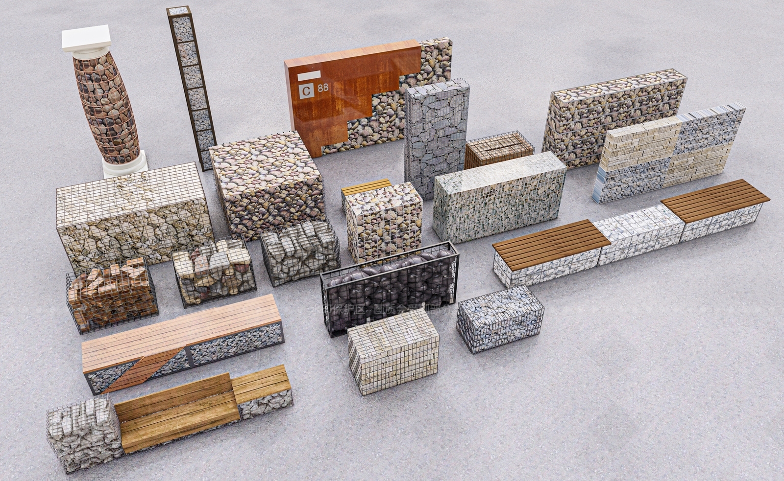 现代简约景墙 石笼 现代石笼墙 石笼座椅 石笼景墙 特色景墙