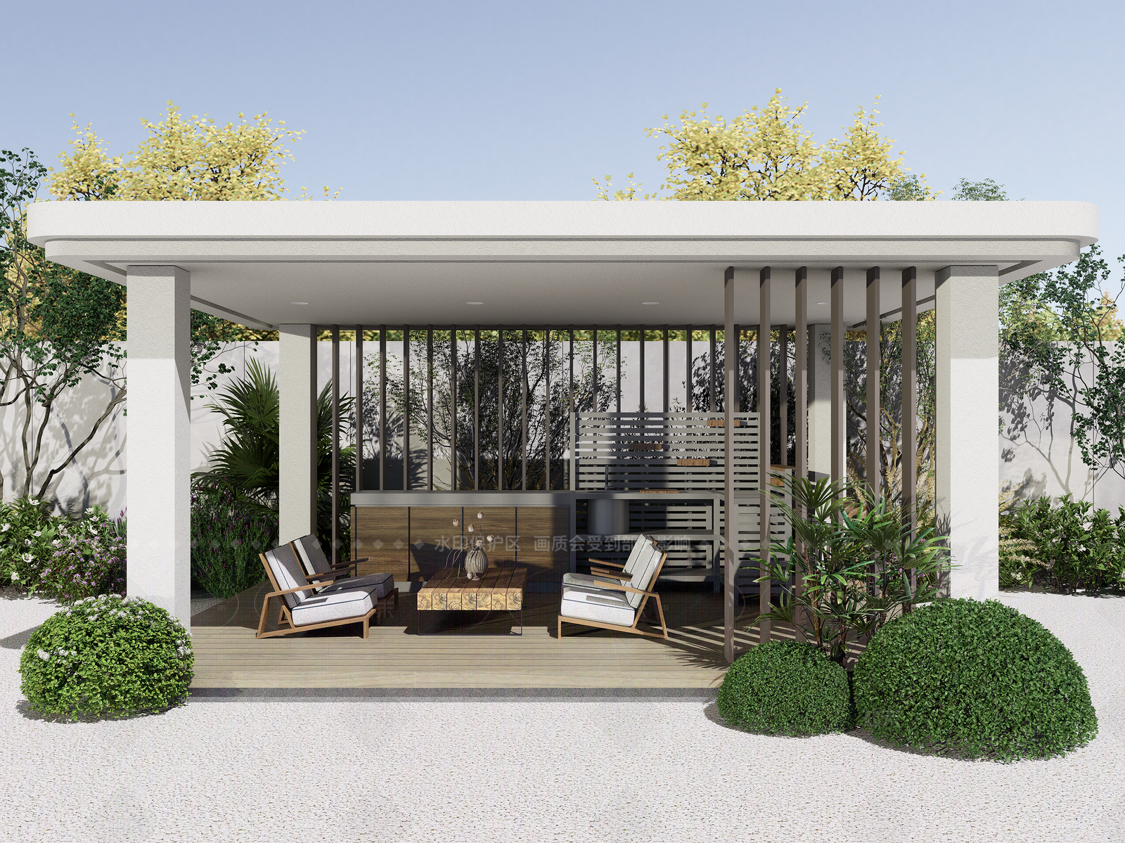现代法式别墅庭院 现代法式亭子 庭院 亭子 庭院景观 户外亭子