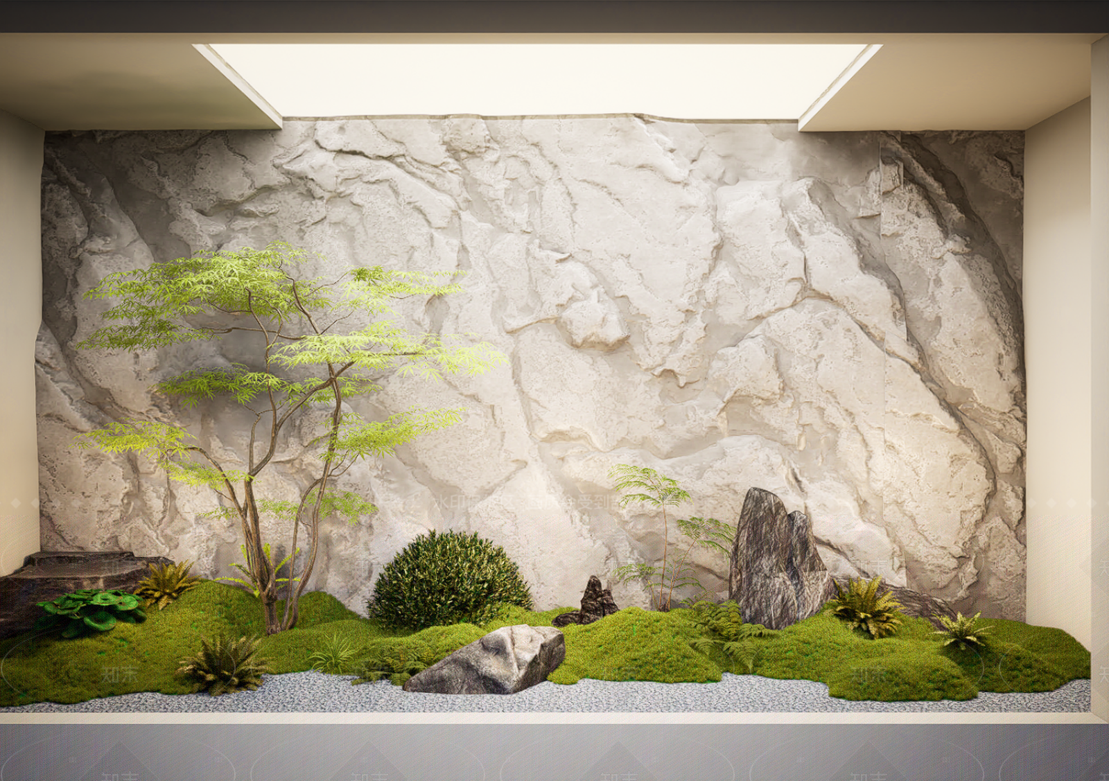 - 现代新中式室内景观 天井室内景观 枯山水 景观石 石头