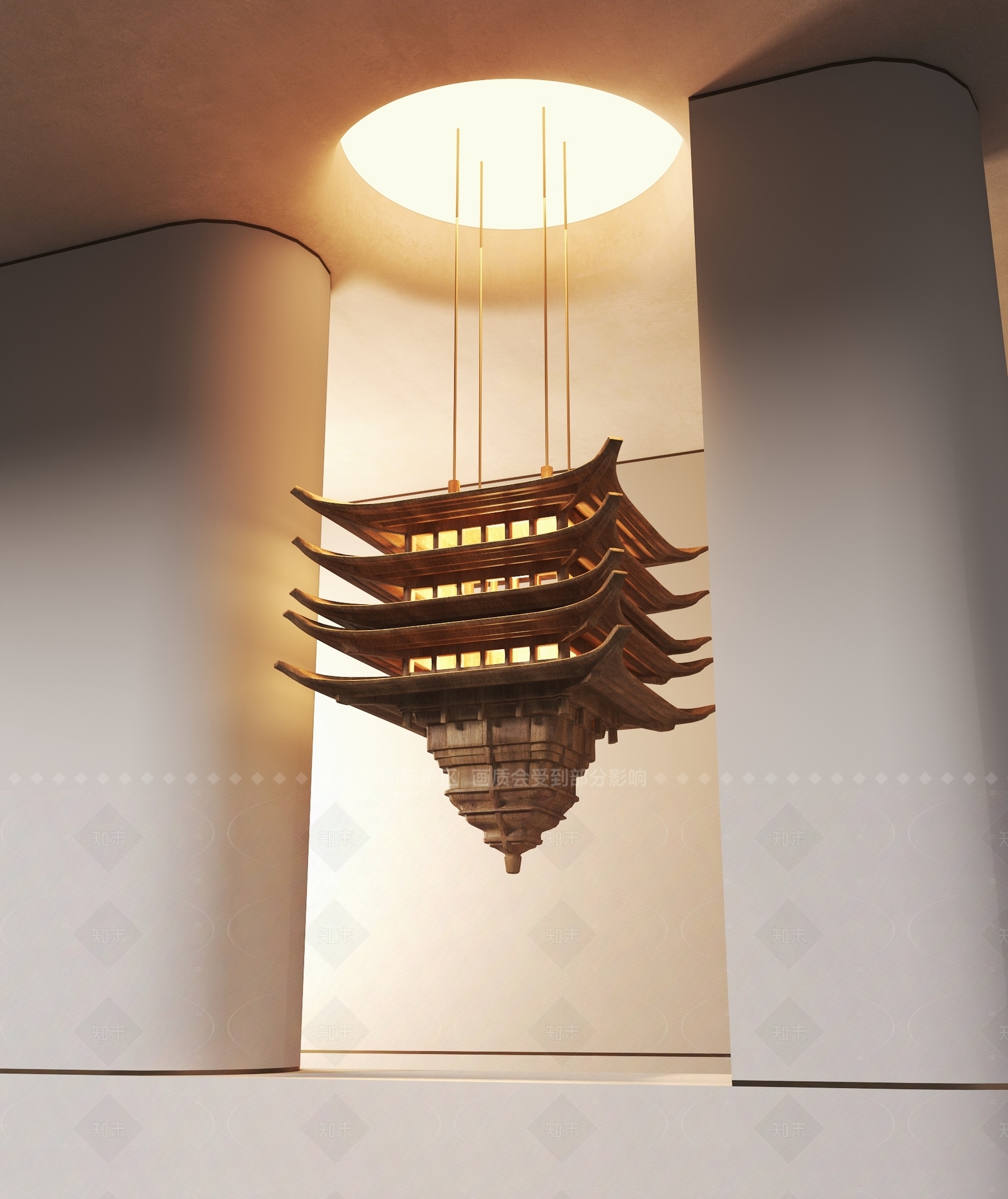 - 新中式中式艺术吊灯 建筑雕塑工艺吊饰 东方韵味木雕灯
