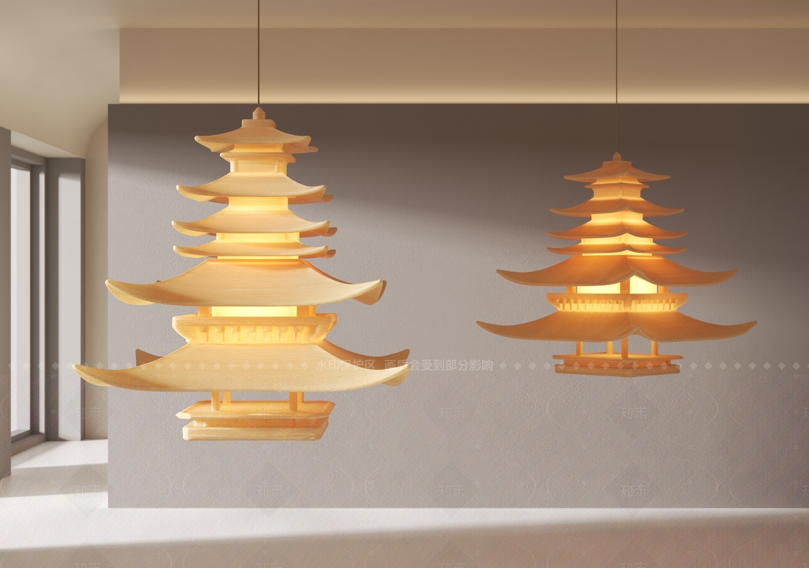 - 新中式中式艺术吊灯 建筑雕塑工艺吊饰 东方韵味木雕灯