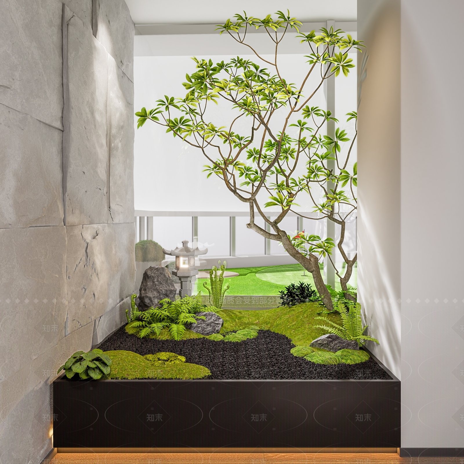 - 现代新中式室内景观 天井室内景观 景观小景 室内置景