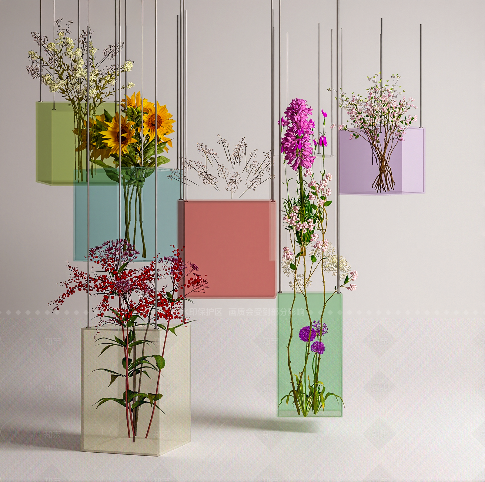 - 现代室内景观 现代室内装置造景 干花造景 玻璃盒子 悬吊装置