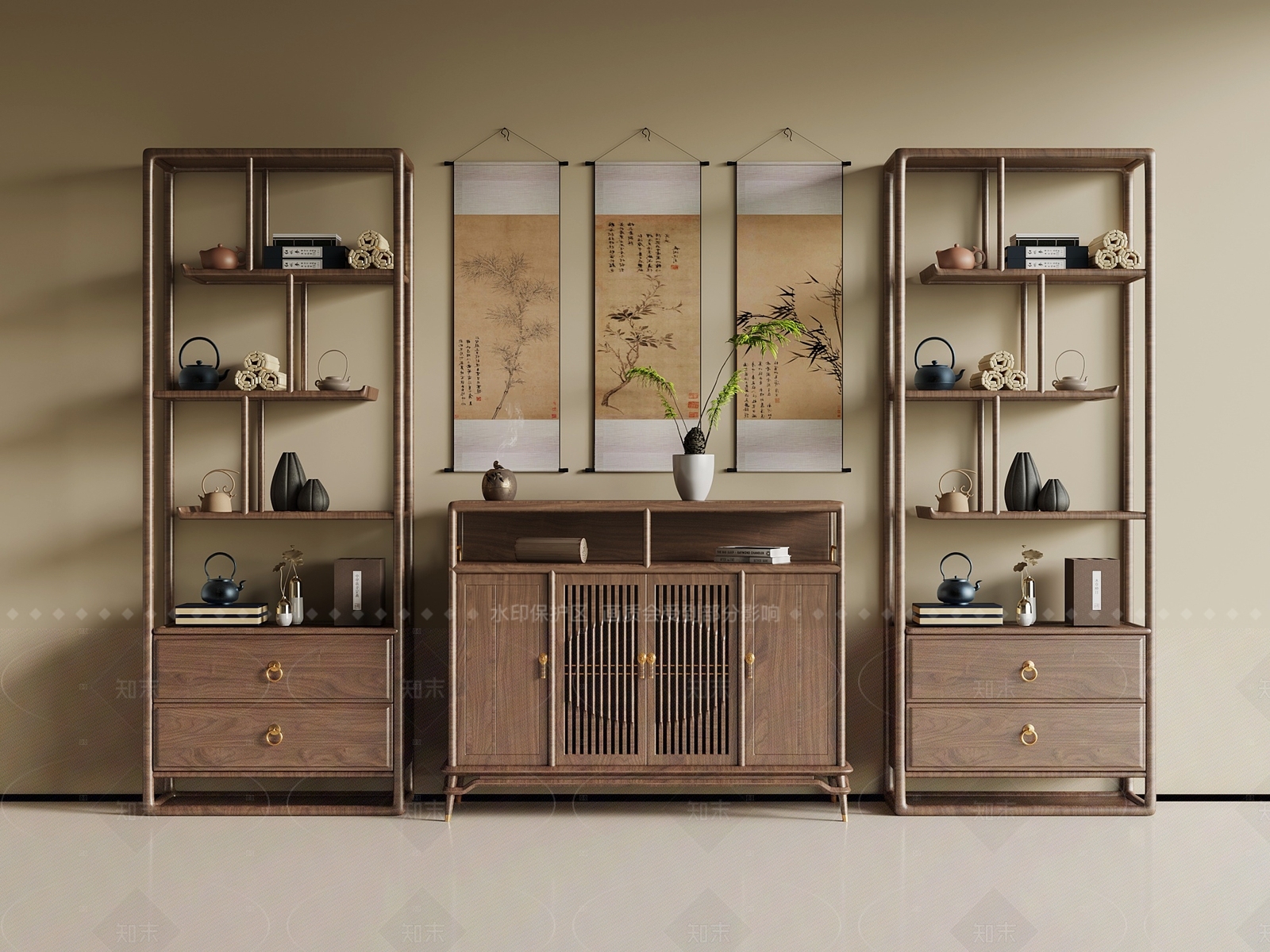 - 新中式博古架 储物柜 博古架 书柜 置物架