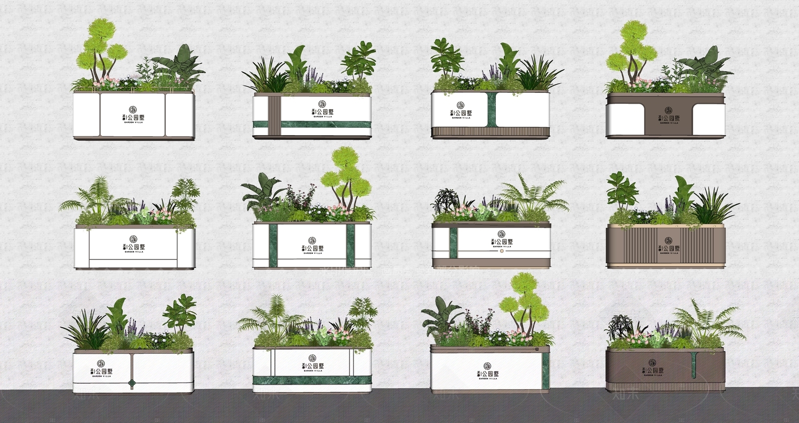 - 植物组合 外摆绿植花箱 新中式景观花箱