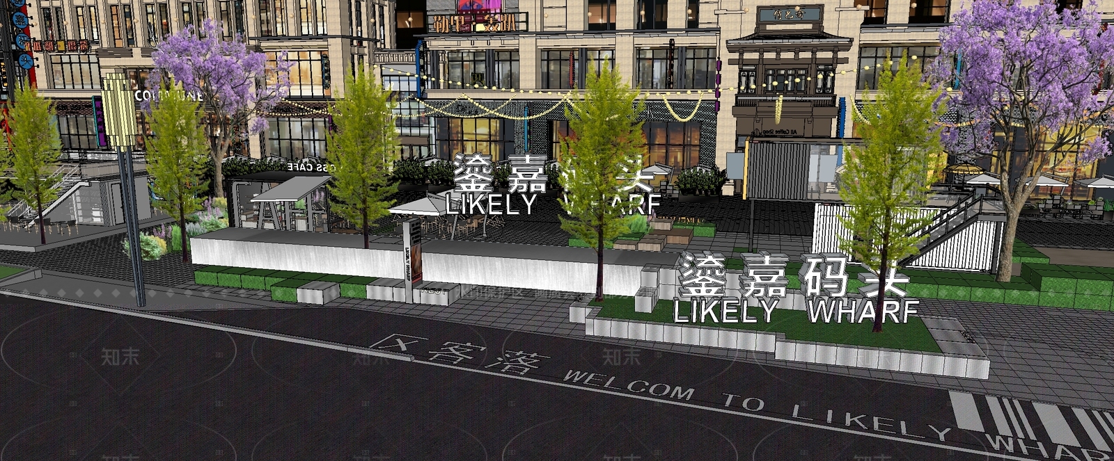 - 现代商业综合体景观 花箱 绿篱 餐饮外摆 艺术装置 商业美陈