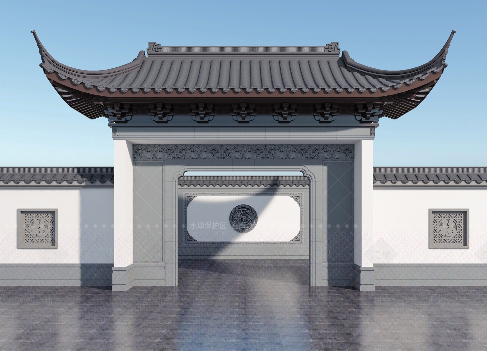 - 现代新中式入口大门 小区入口大门 门楼 坡顶 复古