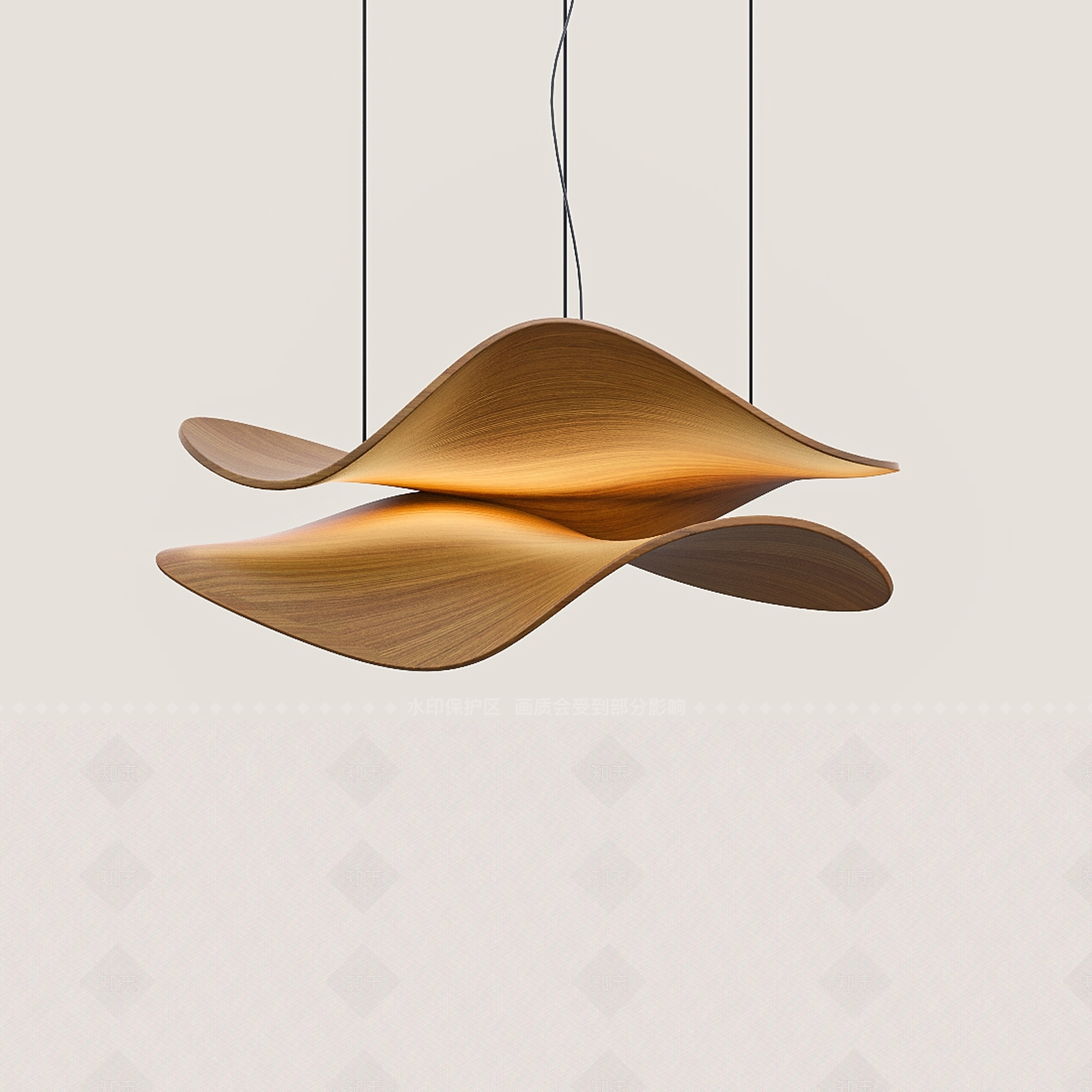- 侘寂中古艺术吊灯 侘寂实木餐厅吊灯 异形波浪中古吊灯 吧台实木日式吊灯 中古法式餐厅吊灯 帆船民宿酒店吊灯