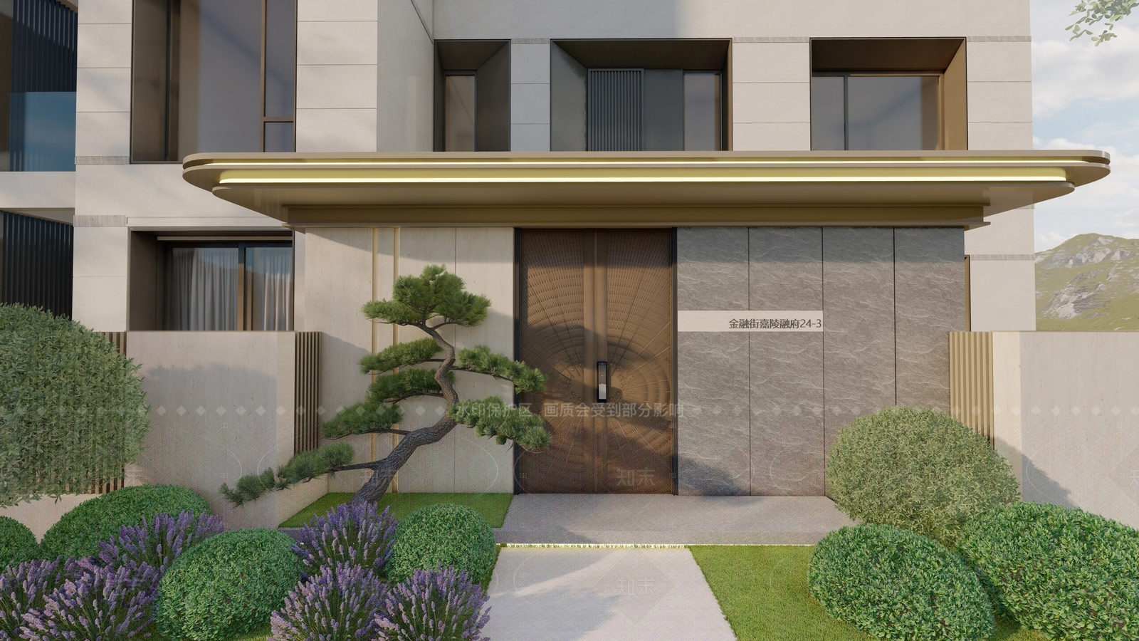 - 现代轻奢入口大门 现代轻奢小区大门 人车分流社区大门 小区环岛落客入口 庭院式小区入口 世园金茂府主入口