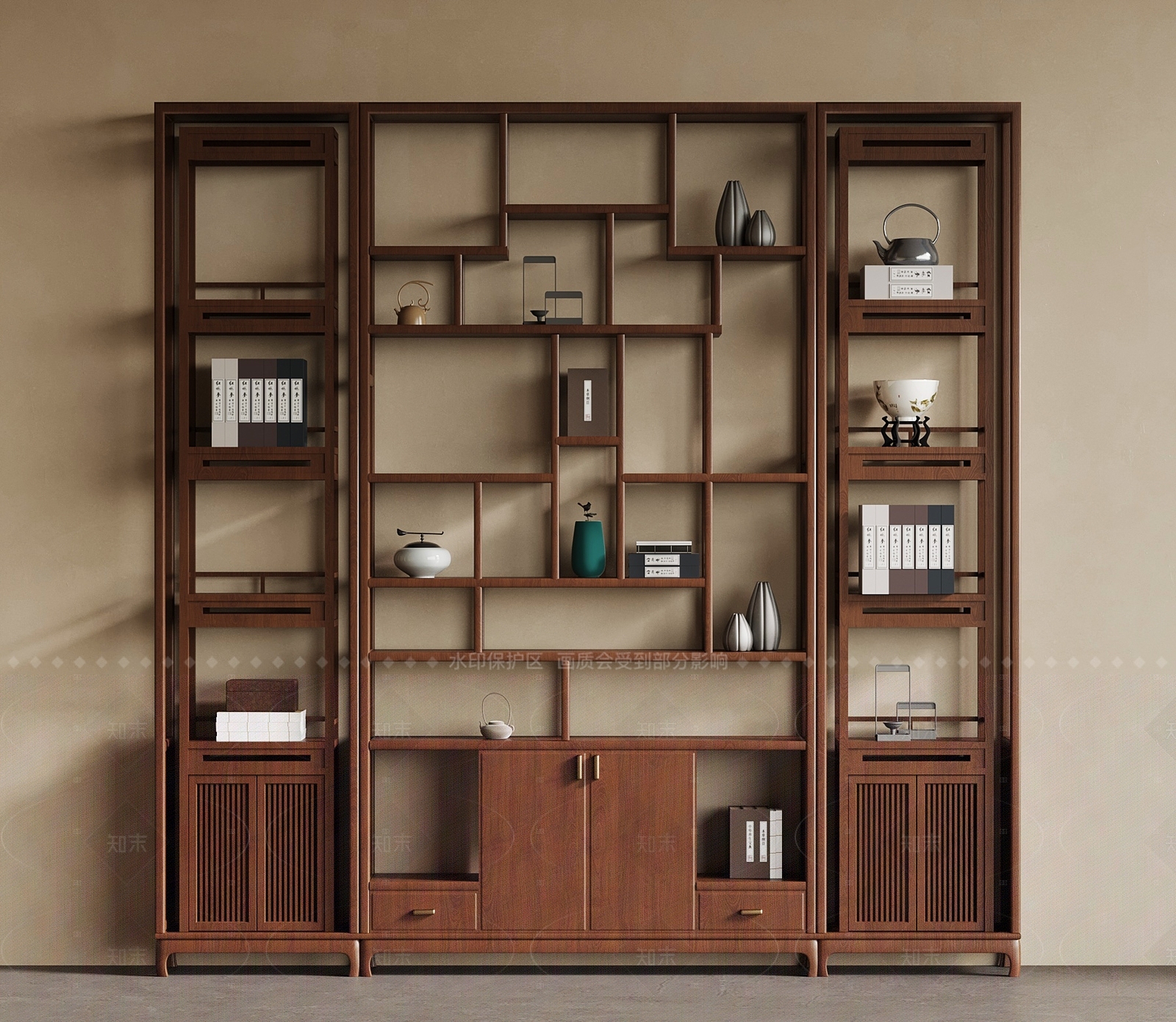 - 新中式博古架 博古架 储物柜 书柜