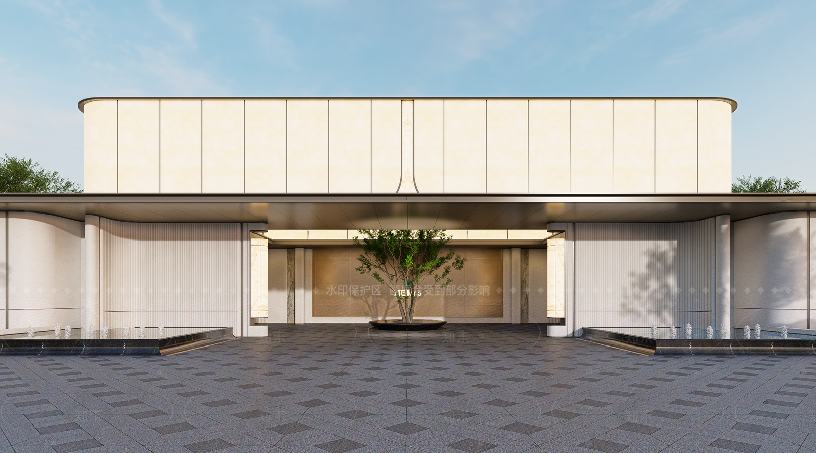 - 现代轻奢入口大门 现代轻奢小区大门 人车分流社区大门 小区环岛落客入口 庭院式小区入口 世园金茂府主入口