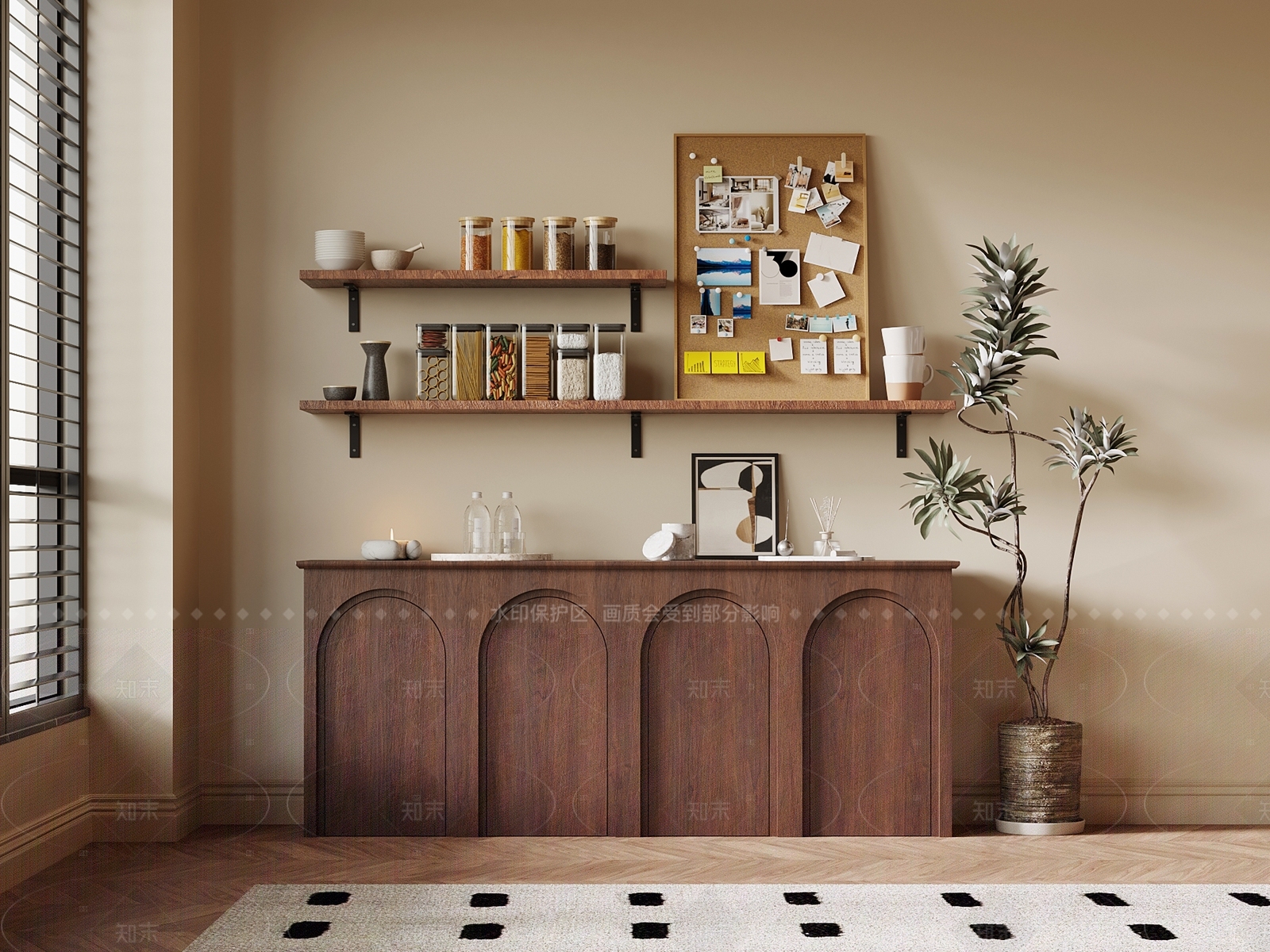 - 现代中古餐边柜 包豪斯奶油侘寂 简约法式原木禅意 茶水备餐鞋冰箱柜 台灯香薰酒咖啡机 金属不锈钢台面木