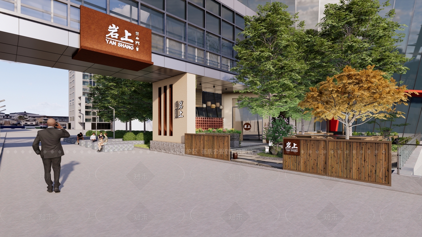 - 现代商业综合体景观 商业景观 商业外摆 花箱 餐桌