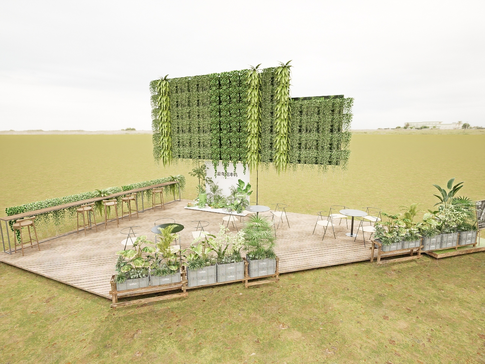 - 现代商业综合体景观 花箱 绿篱 餐饮外摆 艺术装置 商业美陈