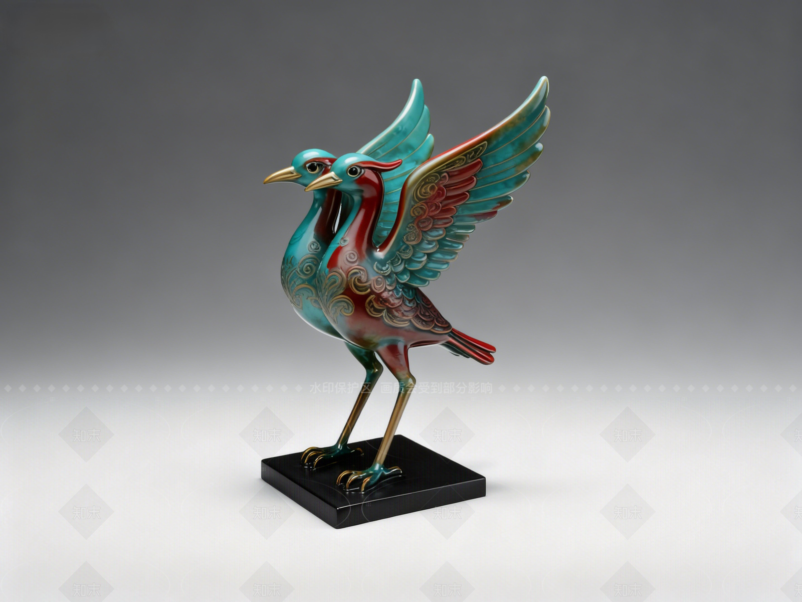 新中式中式雕塑 比翼鸟 雕塑 美陈 山海经神兽 AIGC