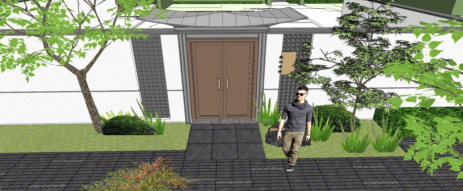 - 新中式现代别墅 二层别墅 别墅大门 庭院大门