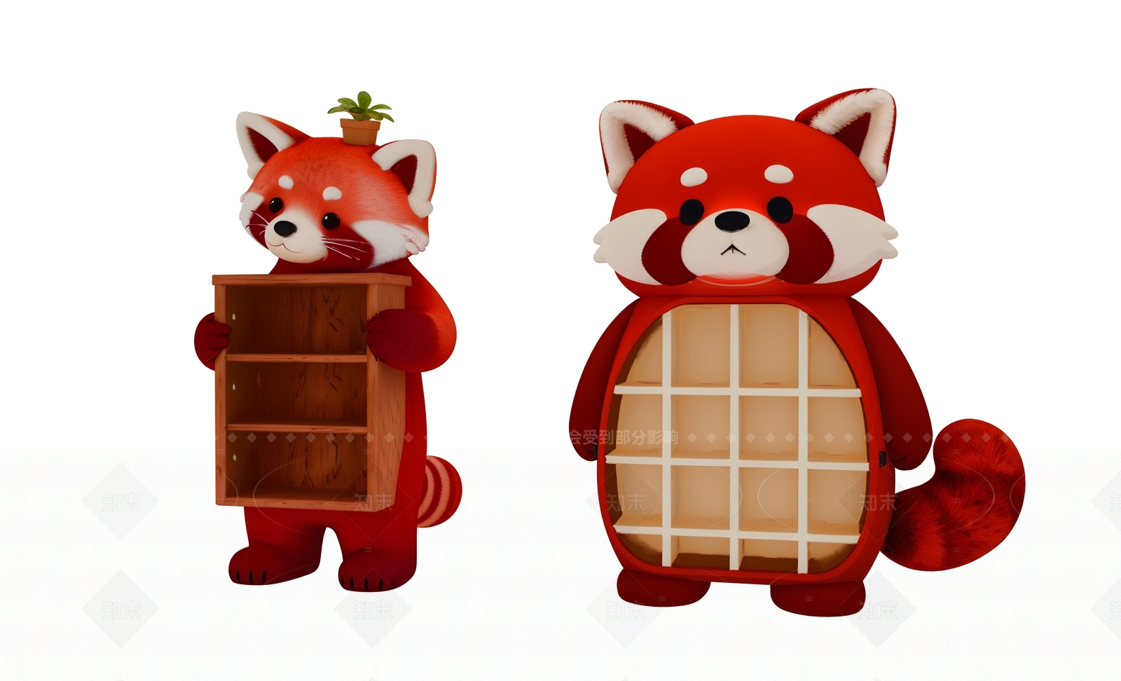 - 现代书柜 两个小熊猫书柜 儿童书柜 动物主题书店书柜 开放书柜 动物艺术装置