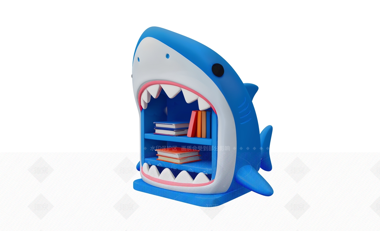 - 现代书柜 鲨鱼书柜 儿童书柜 开放书柜 动物主题书店书柜 鲨鱼艺术装置