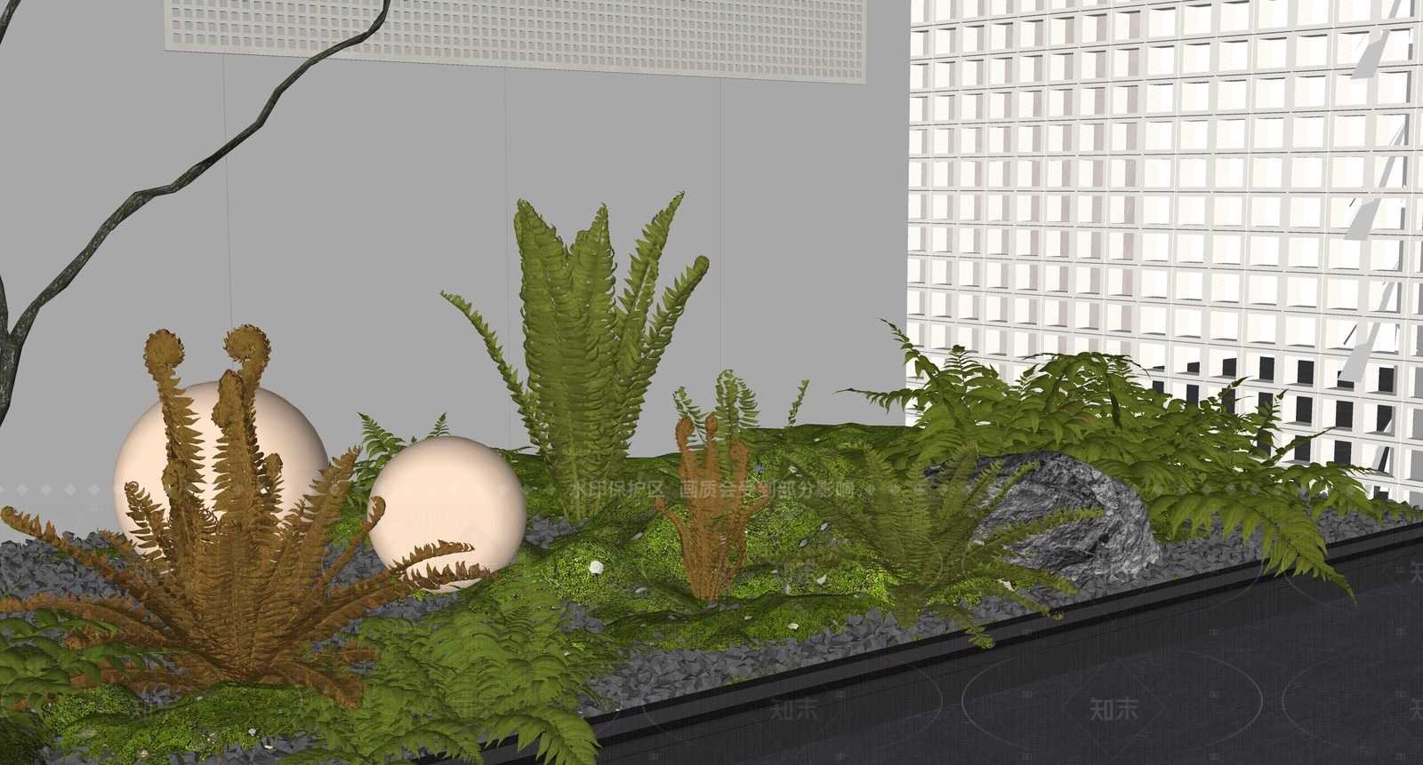 - 新中式庭院景观小品 室内景观造景 植物堆 景观树 蕨类植物 室内造景